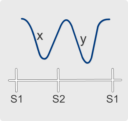 The prominent "x" and "y" descents demonstrated in this graphic are typically seen in constrictive pericarditis, restrictive myocardial disease and occasionally pericardial tamponade and are, in part, related to the high venous pressure seen in these conditions. Another helpful clue to these disorders is that the jugular venous pressure may actually rise or fail to show the normal decline during inspiration, so-called Kussmaul's sign.