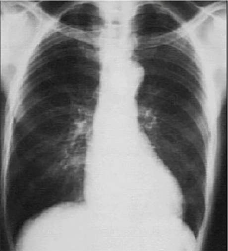 cardiothoracic ratio is less than fifty percent, a normal finding. The pulmonary vasculature is normal. Although left ventricular mass may be increased, there is no evidence of ventricular dilatation.